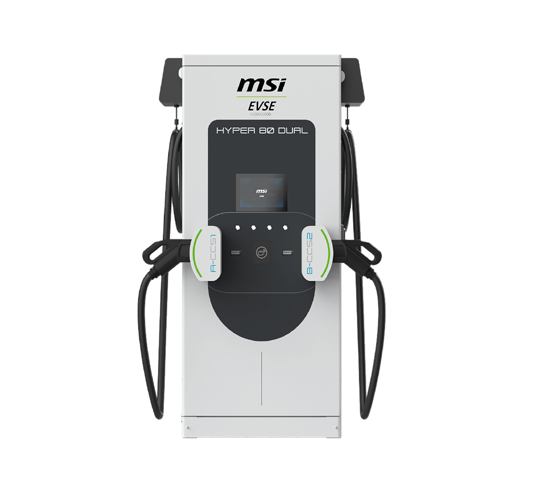 - شارژر MSI Hyper-80 Dual با کنترل هوشمند جریان و ولتاژ، امکان شارژ سریع و ایمن باتری خودروهای برقی را فراهم میکند و از دشارژ یا شارژ بیش از حد جلوگیری میکند.